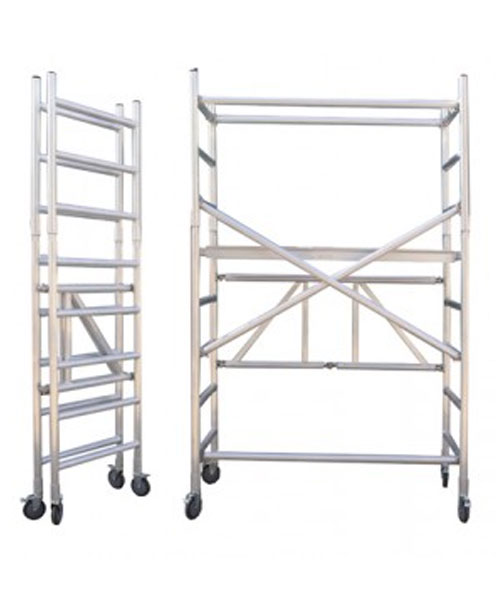 Ideal for one man use, the folding tower is quick and easy to erect. The unit fits easily through a standard doorway and folds flat to fit into a small van or on a roof rack. Greater heights can be reached by adding on further components to provide a full height narrow width tower.